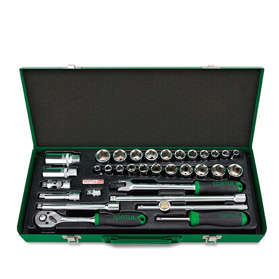 TOPTUL GCAD3303 6PT Socket Set Satin Chrome/Metal Box (3/8", 33PCS) | EMIN.CO.TH