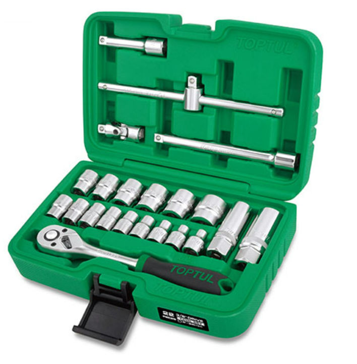 TOPTUL GCAI2201 Professional Grade 3/8" DR. Flank Socket Set (22 pcs; 6PT; Mirror) | EMIN.CO.TH