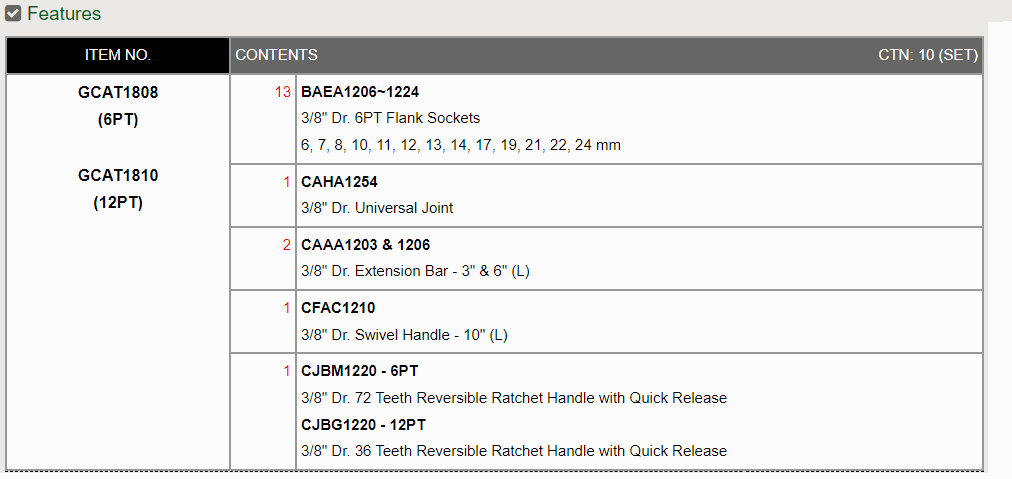 TOPTUL GCAT1810 DR. Flank Socket Set (3/8'', 18 pcs) | EMIN.CO.TH
