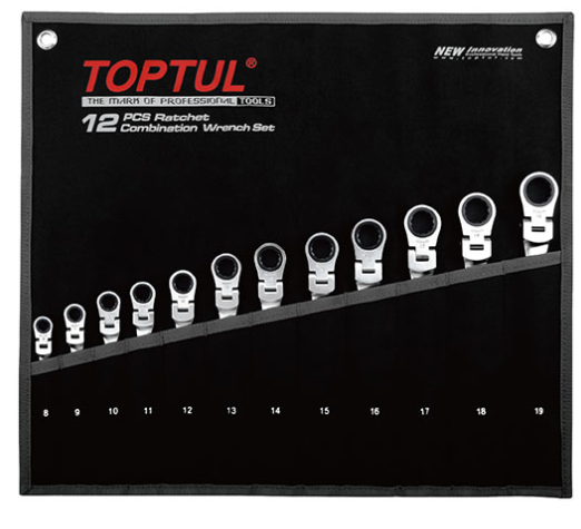 TOPTUL GPAQ1204 Pro-Series Flexible Ratchet Combination Wrench Set (12 pcs) | EMIN.CO.TH