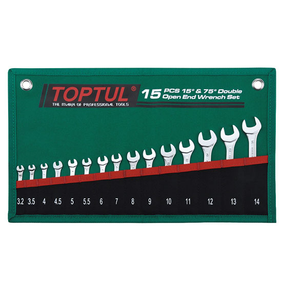TOPTUL GRAJ1501 15°&75° Double Open End Wrench Set (15 pcs) | EMIN.CO.TH
