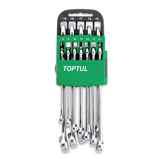 TOPTUL GSAX1001 15° Offset Hi-Performance Combination Wrench Set (10 pcs, 8-19mm) | EMIN.CO.TH