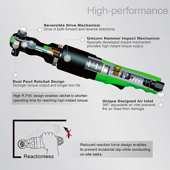 TOPTUL KAAL1610 Super Duty Air Impact Ratchet Wrench (1/2", 136 Nm) | EMIN.CO.TH
