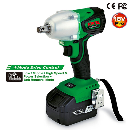 TOPTUL KPA-1639 1/2" DR. Brushless Cordless Impact Wrench (18V; 120-385Nm) | EMIN.CO.TH