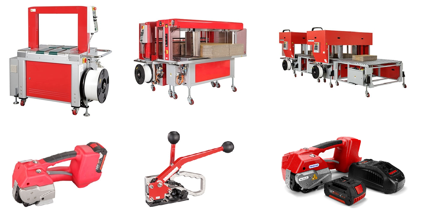 This product portfolio shows that Transpak not only focuses on strapping machines but also supports businesses with auxiliary tools, consumables, and machines suitable for different strap types and packaging applications.