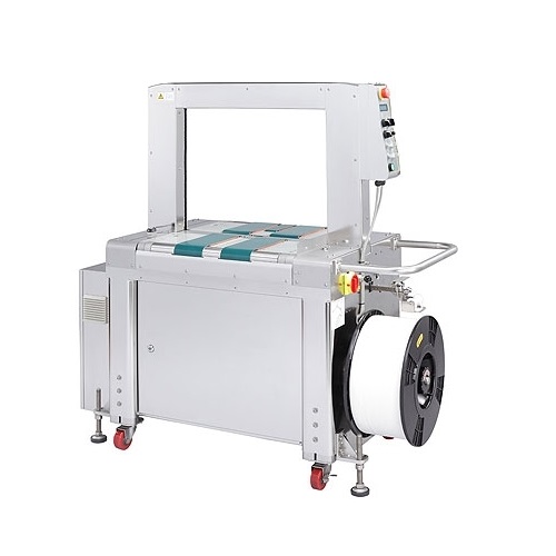 Mercury Transit TP-702BS is a high-speed fully automatic strapping machine with stainless steel frame (SUS 304). It is the fastest and most reliable strapping machine for moist working environment, such as meat, seafood, poultry, and agricultural processing plants.
