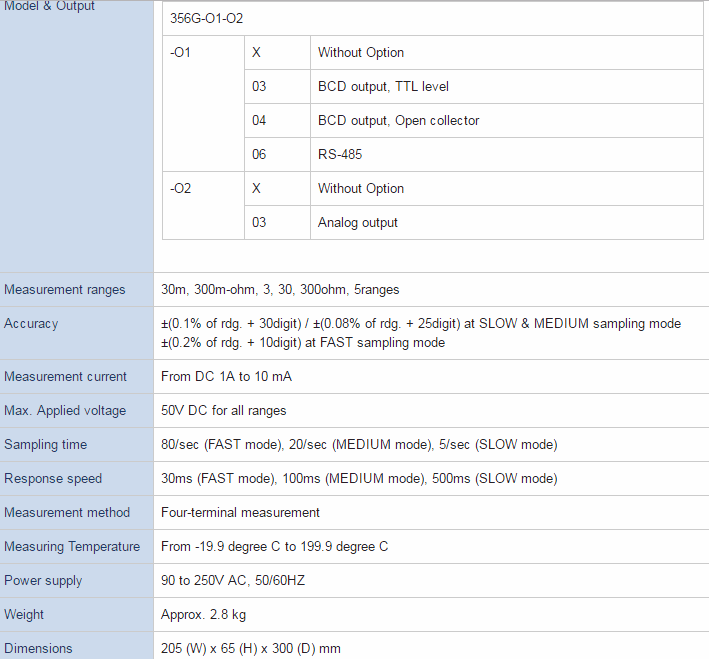 Measurement ranges 30m, 300m-ohm, 3, 30, 300ohm, 5ranges