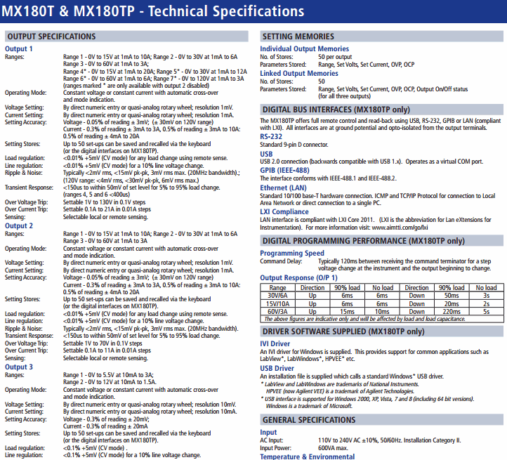 Setting Accuracy: Voltage - 0.05% of reading ± 3mV; (± 30mV on 120V range)