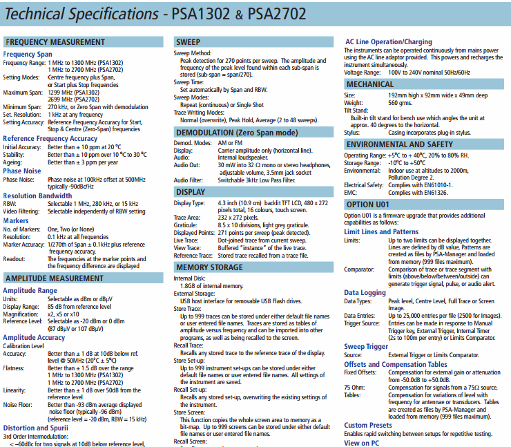 Frequency Range: 1 MHz to 1300 MHz (PSA1302)