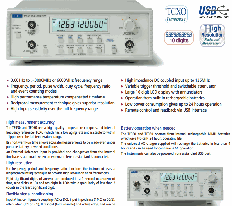 The displayed resolution depends upon measurement time and input frequency. The basic
