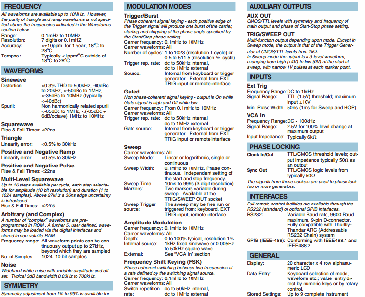 TTI TG1010A Programmable DDS function generator (10Mhz, RS232/GPIB) | EMIN.CO.TH