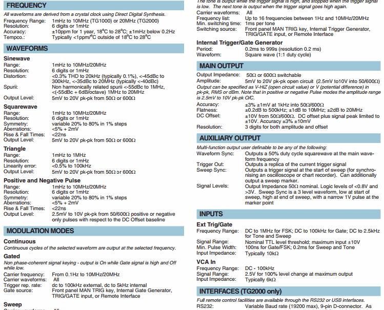 TTI TG2000 Function Generator (20Mhz, RS232/USB) | EMIN.CO.TH