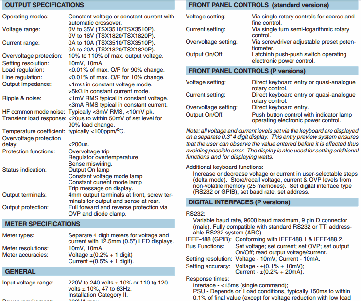 TTI TSX1820P Bench DC Power Supply (0〜18V、0〜20A、360W、RS232 / GPIB) | EMIN.CO.TH
