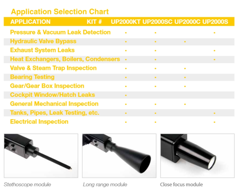 Sensitivity: Detects 0.127 mm (0.005") diameter leak @ 0.34 bar (5 psi) at a distance of 15.24 m (50 ft.)