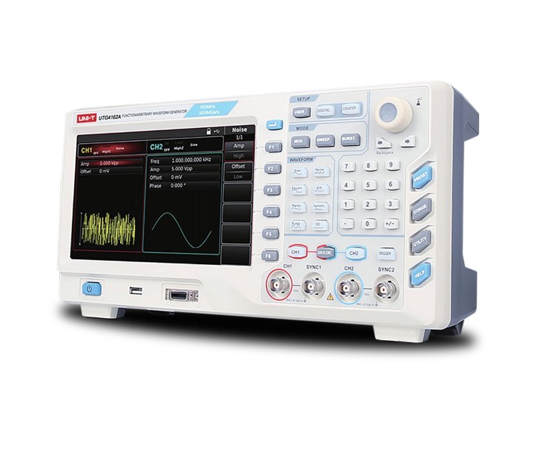 Waveforms : Sine,square,ramp,harmonic,pulse,noise,DC voltage,arbitrary