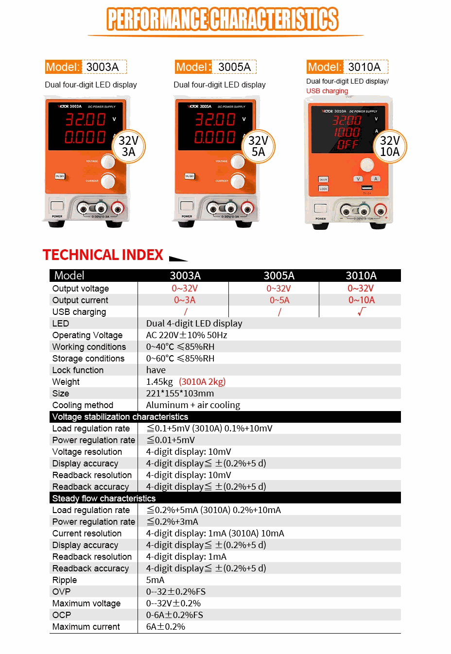 Power regulation rate: ≤0.2%+3mA