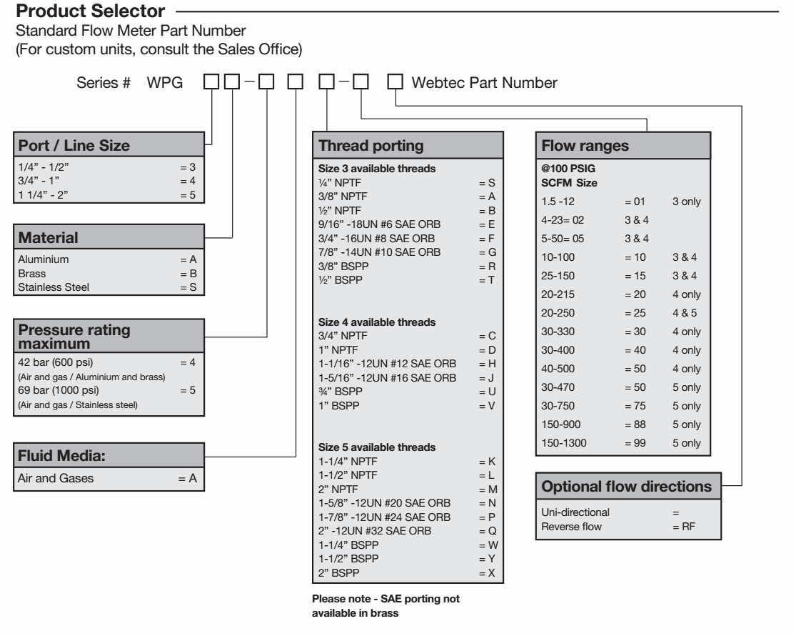 Flow measuring range: 1.5 - 1300 SCFM (Standard cubic feet per minute)