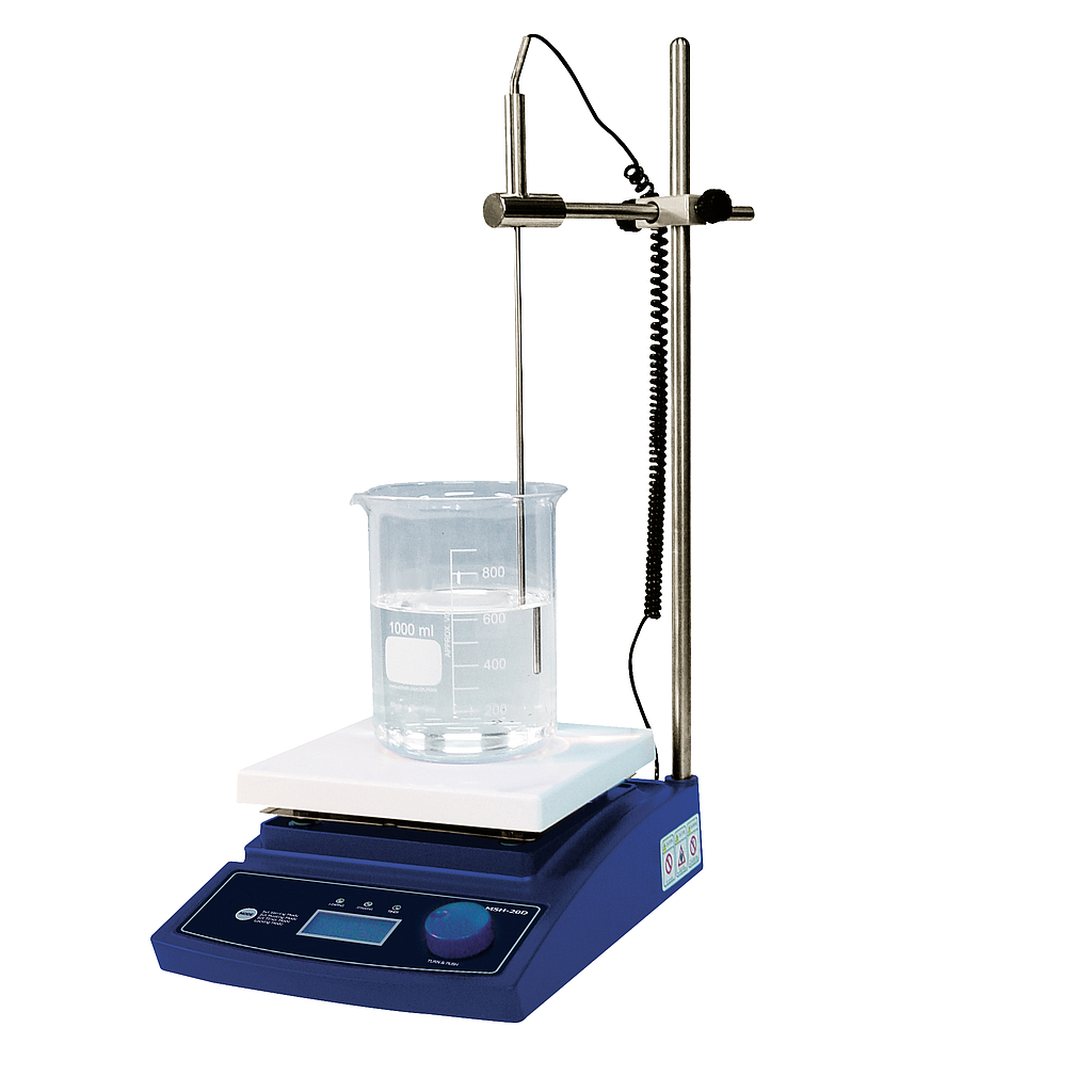 Set included: Magnetic stirrer with hotplate MSH-D, temperature probe, stand rod, holder / clamp / clip, power cable, stirrer bar, instruction manual
