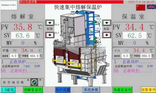 The programmable controller PLC of the aluminum scrap melting furnace interacts with the HMI for internal execution of