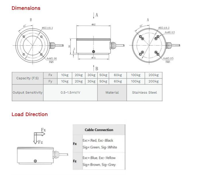 XJCSENSOR X-2A-A-D82-H38 2 Axis Load Cell (10kg~200kg) | EMIN.CO.TH