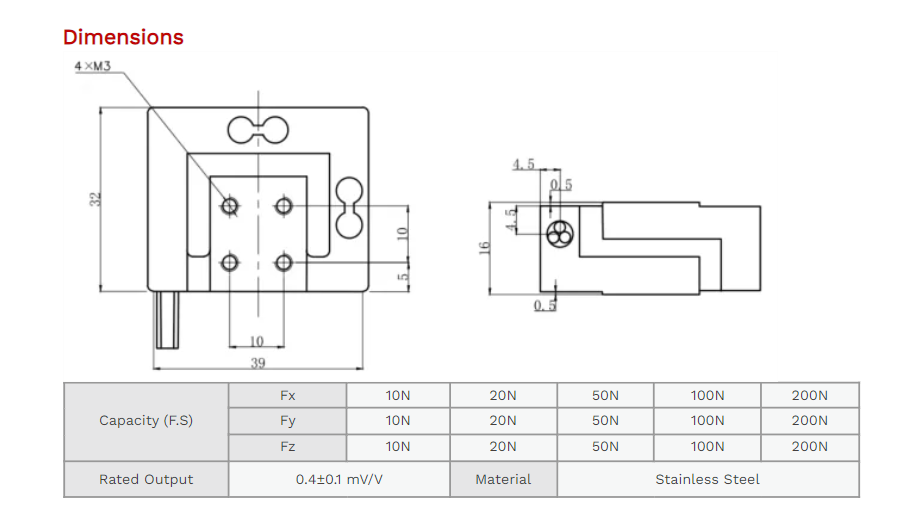XJCSENSOR X-3A-F39-B 3 Axis Load Cell (10N~200N) | EMIN.CO.TH