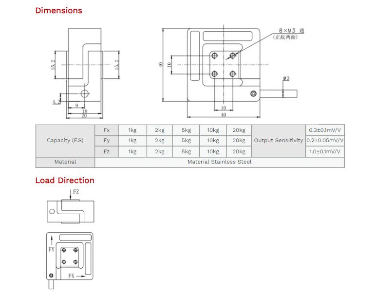 XJCSENSOR X-3A-F40-C 3 Axis Load Cell (1~20 Kg) | EMIN.CO.TH
