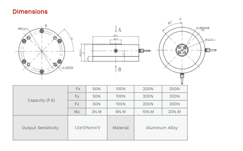 XJCSENSOR X-4A-D74-H28 4 Axis Force/Torque Sensor (50N) | EMIN.CO.TH
