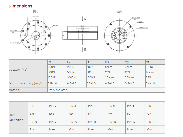 XJCSENSOR X-6A-D118-H31-B 6 Axis Force/Torque Sensor (200N~1000N) | EMIN.CO.TH