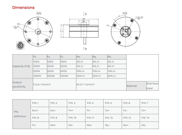 XJCSENSOR X-6A-D62-H27-A 6 Axis Force/Torque Sensor (100N~1000N) | EMIN.CO.TH