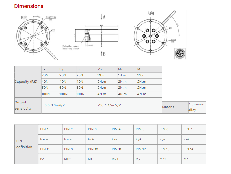 XJCSENSOR X-6A-D82-H29.5-A 6 Axis Force/Torque Sensor (20N~100N) | EMIN.CO.TH