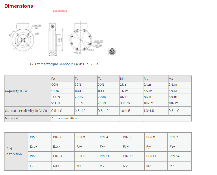 XJCSENSOR X-6A-D90-H32.5-A 6 Axis Force/Torque Sensor (50N~250N) | EMIN.CO.TH