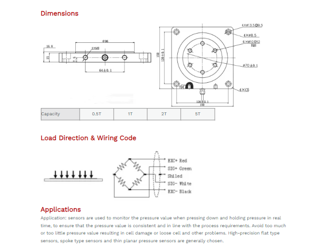 Cable Connection: Ex+: Red;Ex-: Black;Sig+: Green;Sig-: White