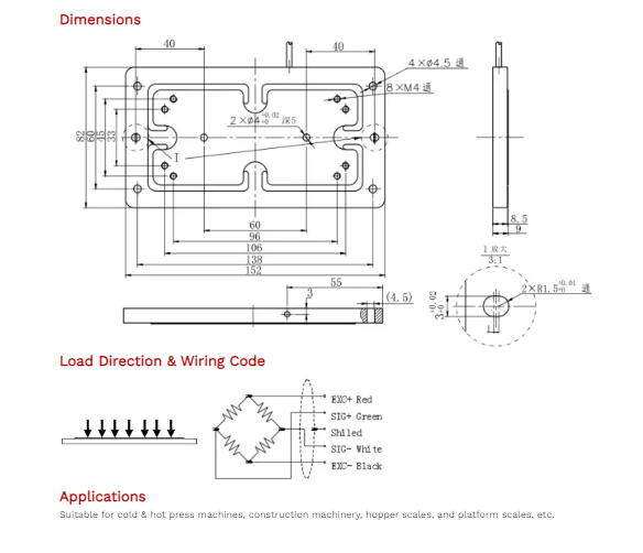 Cable Connection: Ex+: Red; Ex-: Black; Sig+: Green; Sig-: White