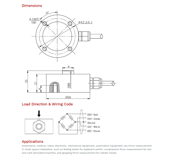 Cable Connection: Ex+: Red; Ex-: Black; Sig+: Green; Sig-: White