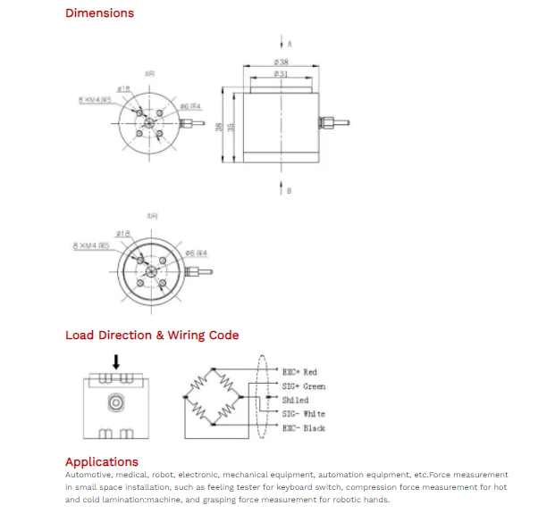 Cable Connection: Ex+: Red; Ex-: Black; Sig+: Green; Sig-: White