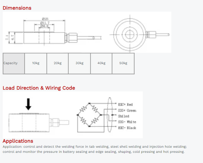 Cable Connection: Ex+: Red;Ex-: Black;Sig+: Green;Sig-: White