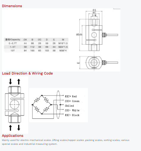 Cable Connection: Ex+: Red;Ex-: Black;Sig+: Green;Sig-: White