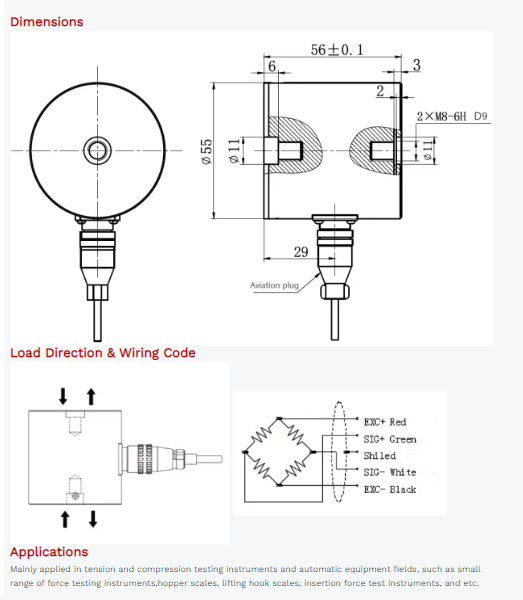 Cable Connection: Ex+: Red;Ex-: Black;Sig+: Green;Sig-: White
