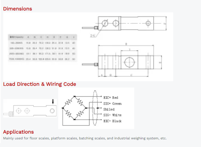 Cable Connection: Ex+: Red; Ex-: Black; Sig+: Green; Sig-: White