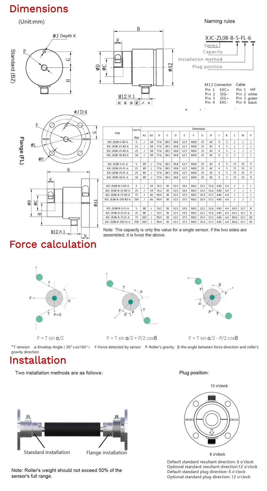XJCSENSOR XJC-ZL08-50-FL-6 Flange Tension Sensor (50 kg) | EMIN.CO.TH