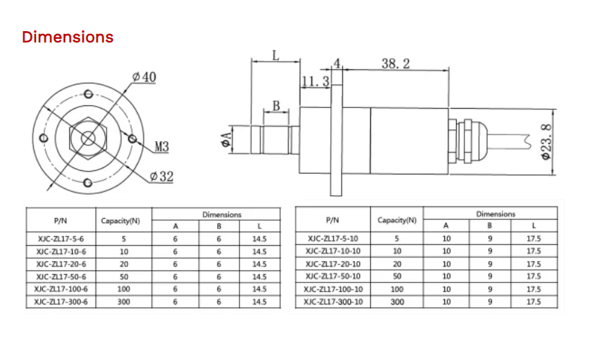 XJCSENSOR XJC-ZL17-5-10 Shaft Head Tension Sensor (5 Kg) | EMIN.CO.TH