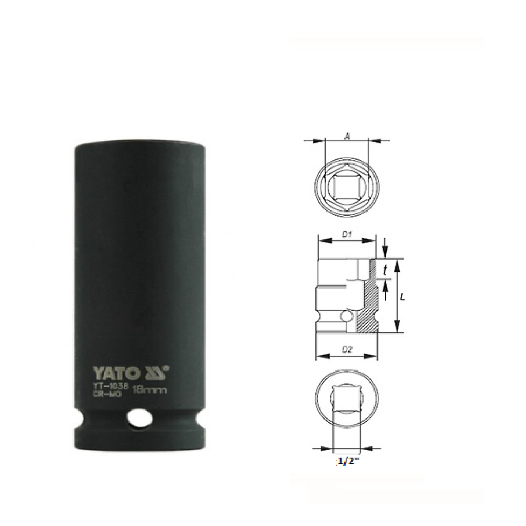 Yato YT-1038 Hexagonal deep impact socket 1/2" (18mm) | EMIN.CO.TH
