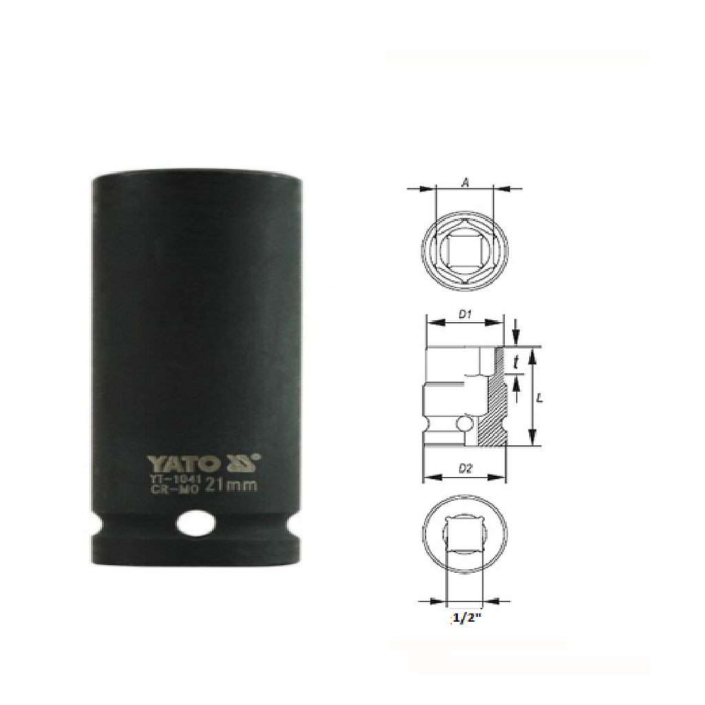 Yato YT-1041 Hexagonal deep impact socket 1/2" (21mm) | EMIN.CO.TH