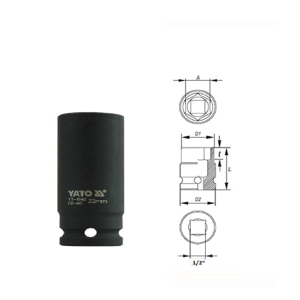 Yato YT-1042 Hexagonal deep impact socket 1/2" (22mm) | EMIN.CO.TH