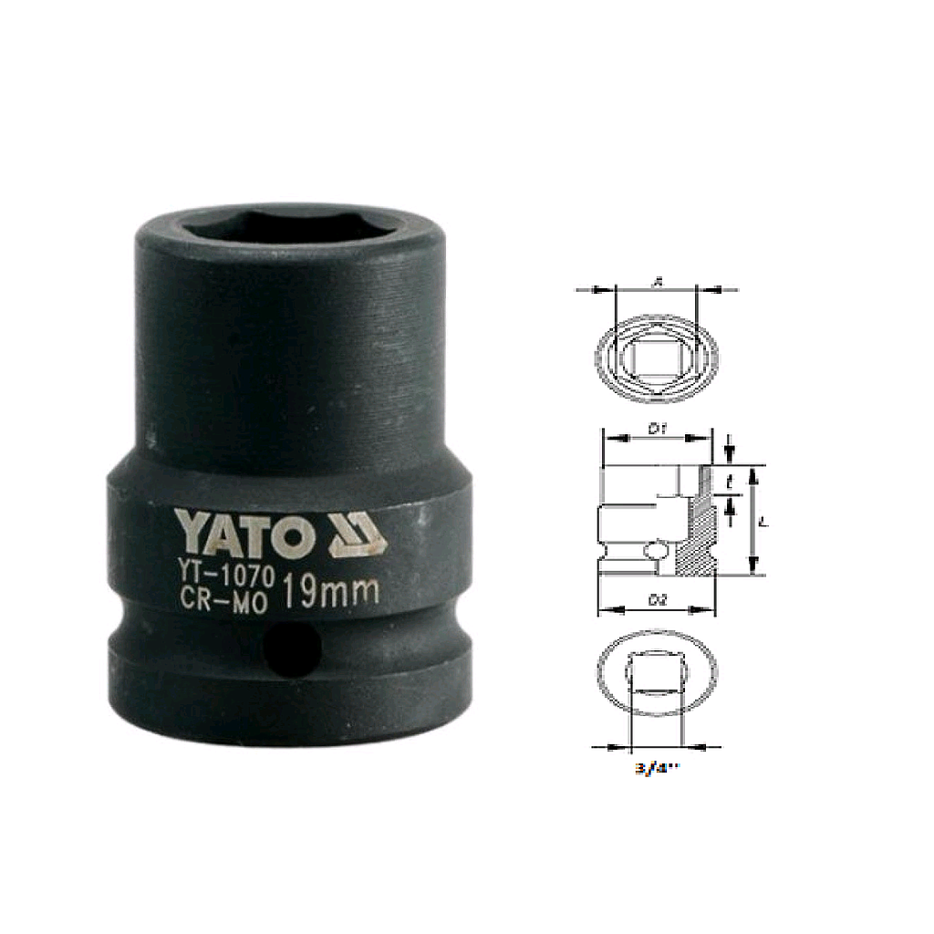 Yato YT-1070 Hexagonal impact socket 3/4" (19mm) | EMIN.CO.TH