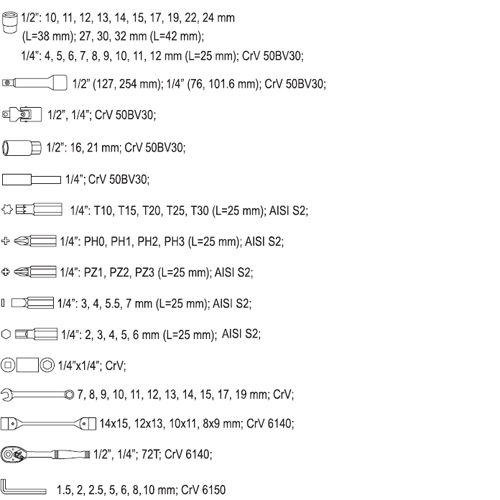 YATO YT-38781 1/4" & 1/2" Repair Tool Set 77 Parts | EMIN.CO.TH