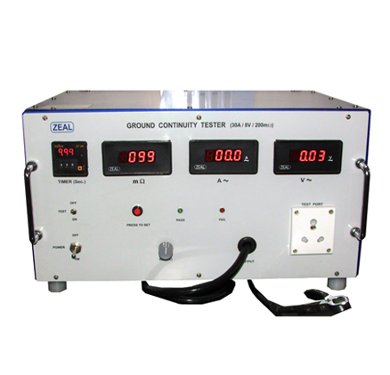 Ground /Earth continuity tester works on test current of sinusoidal waveform.